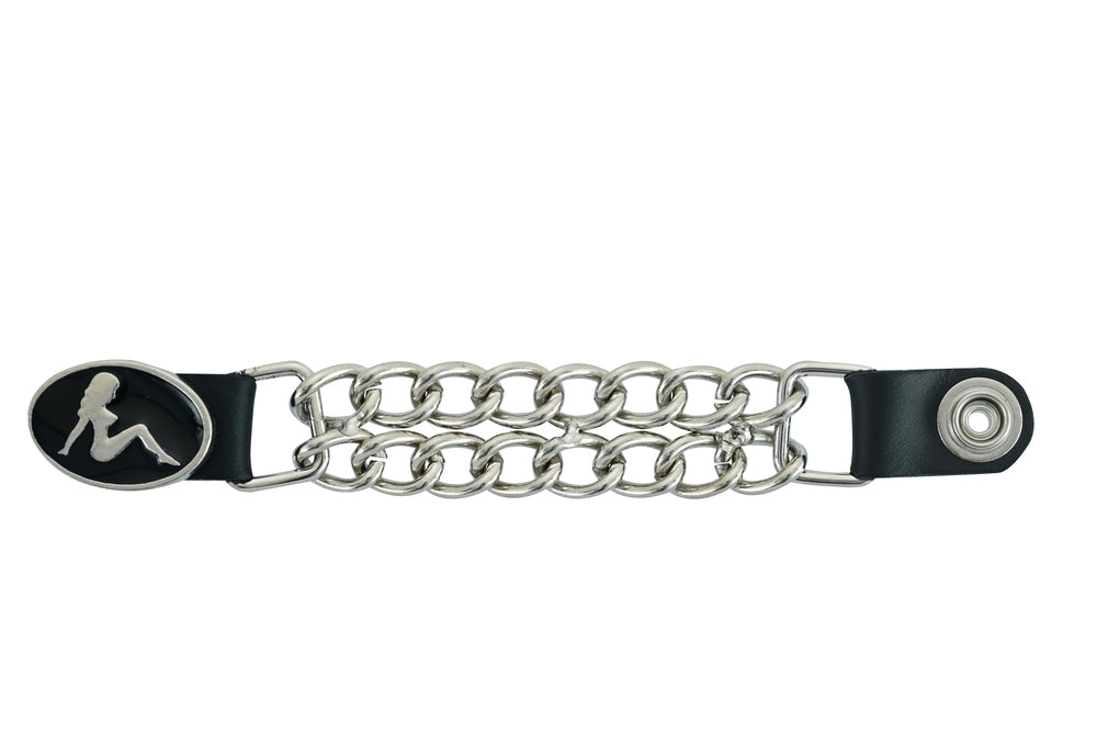 The vest extender also features a chrome motorcycle chain design, giving it a rugged and stylish look.