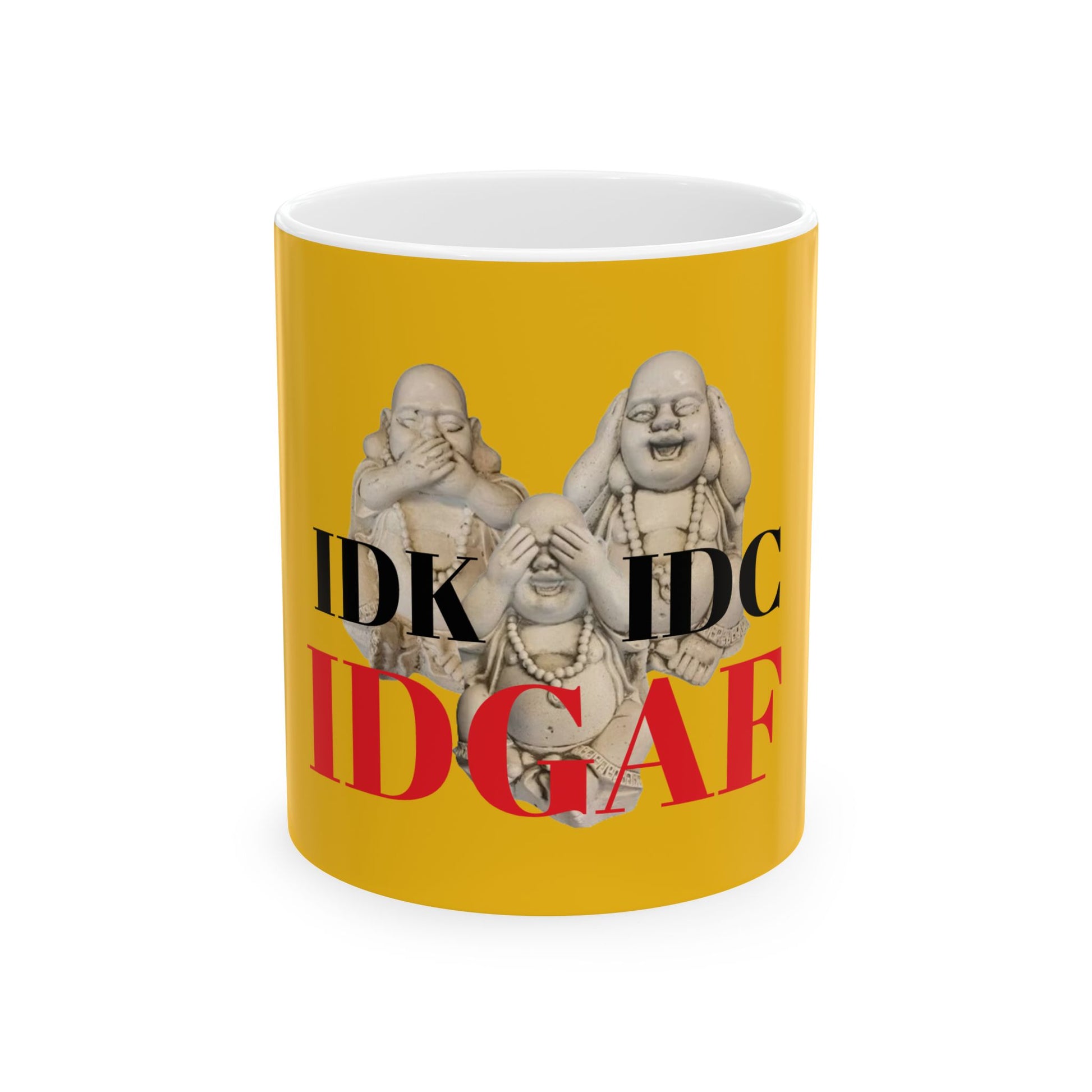 Three Buddhas IDK, IDC, IDGAF 11 Oz. Ceramic Coffee Mug