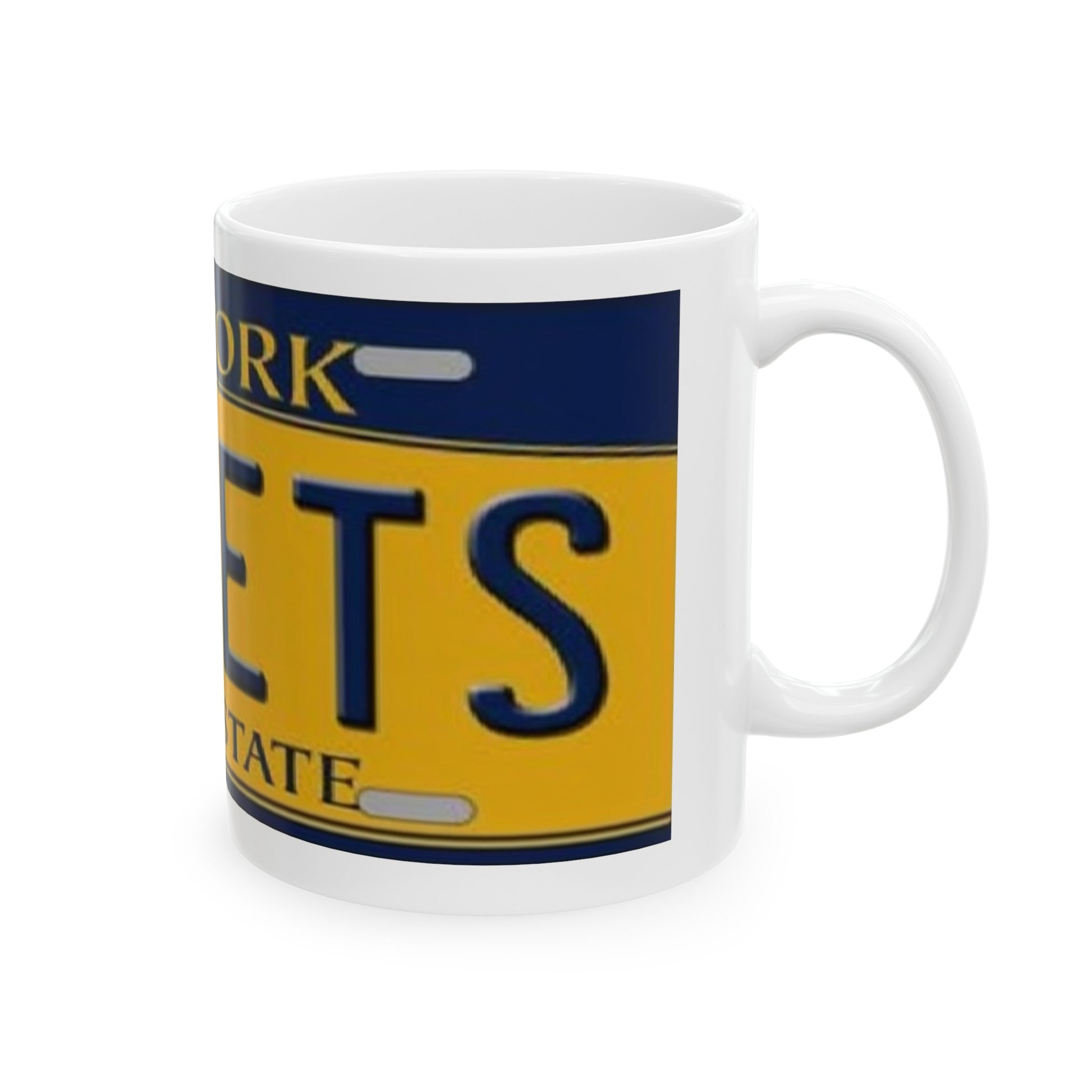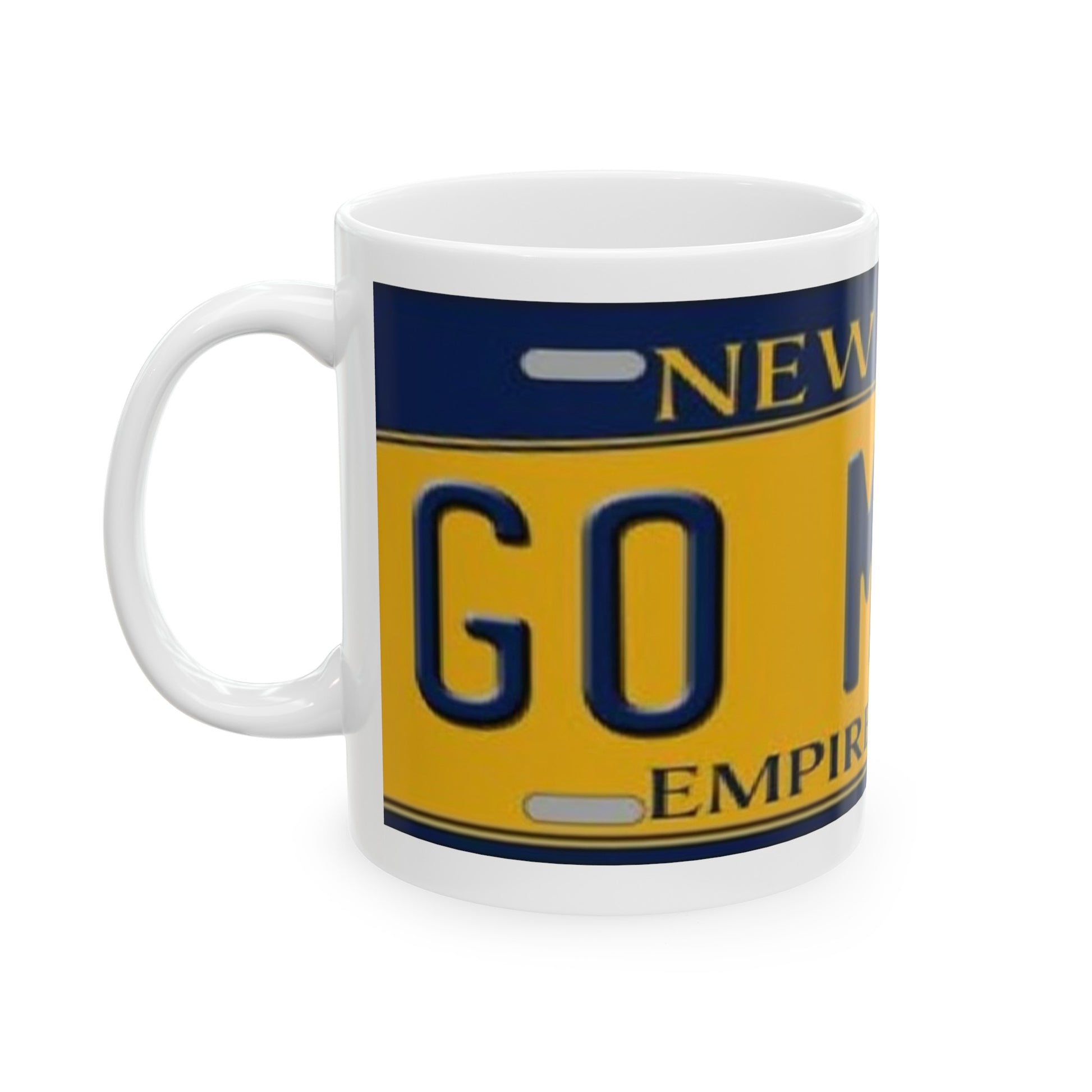 Go Mets Nostalgia Style NY License Plate on an 11 oz Ceramic Coffee Mug. Warm-up with a nice cuppa out of this customized ceramic coffee mug. Personalize it with cool designs, photos or logos to make that "aaahhh!" moment even better. It’s BPA and Lead-free, microwave & dishwasher-safe, and made of white, durable ceramic in 11-ounce size. Thanks to the advanced printing tech, your designs come to life with incredibly vivid colors – the perfect gift for coffee, tea, and chocolate lovers.