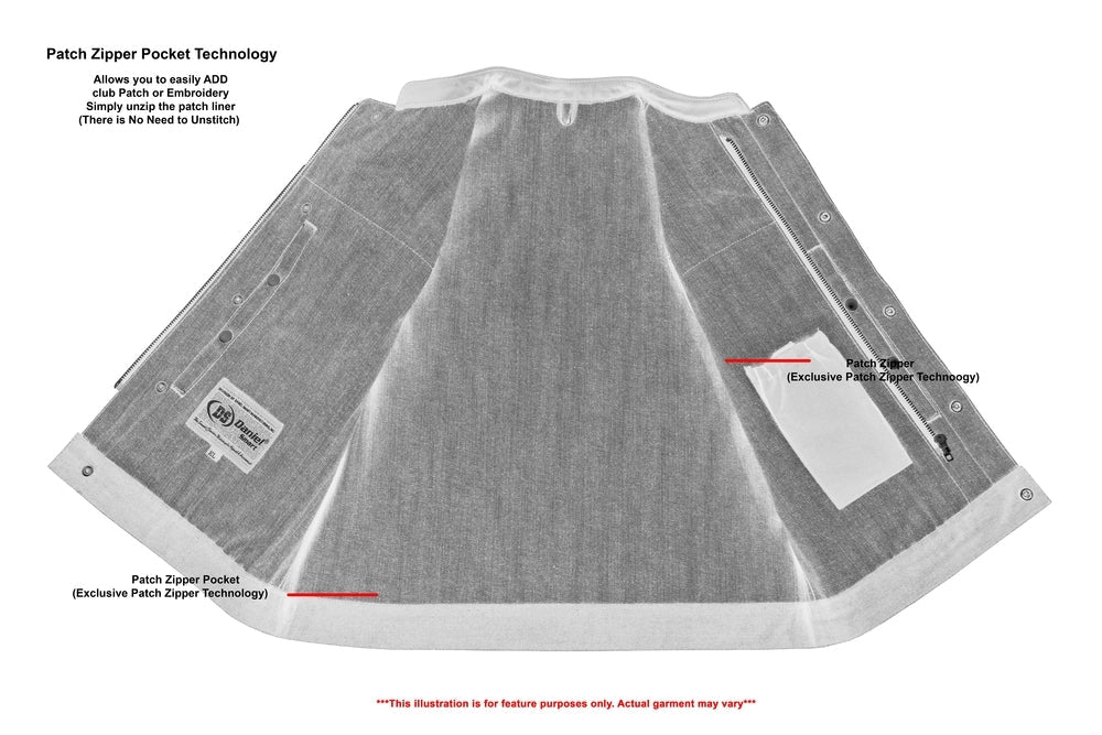 DM Women's Broken Blue Rough Rub-Off Raw Finish Denim Vest W/Leath