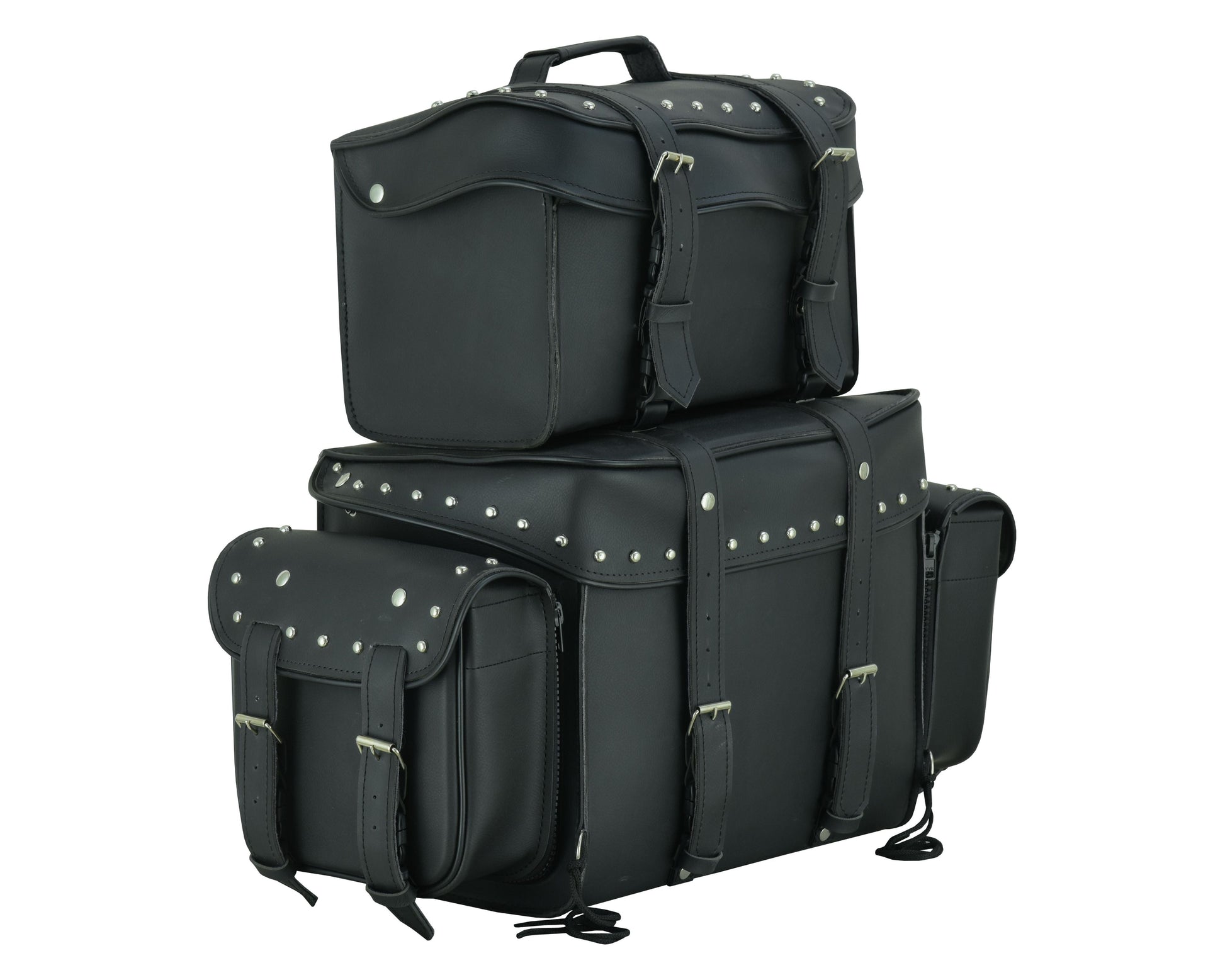 DS Leather Black PVC Large 4 Piece Motorcycle Touring Tail Bag wi
