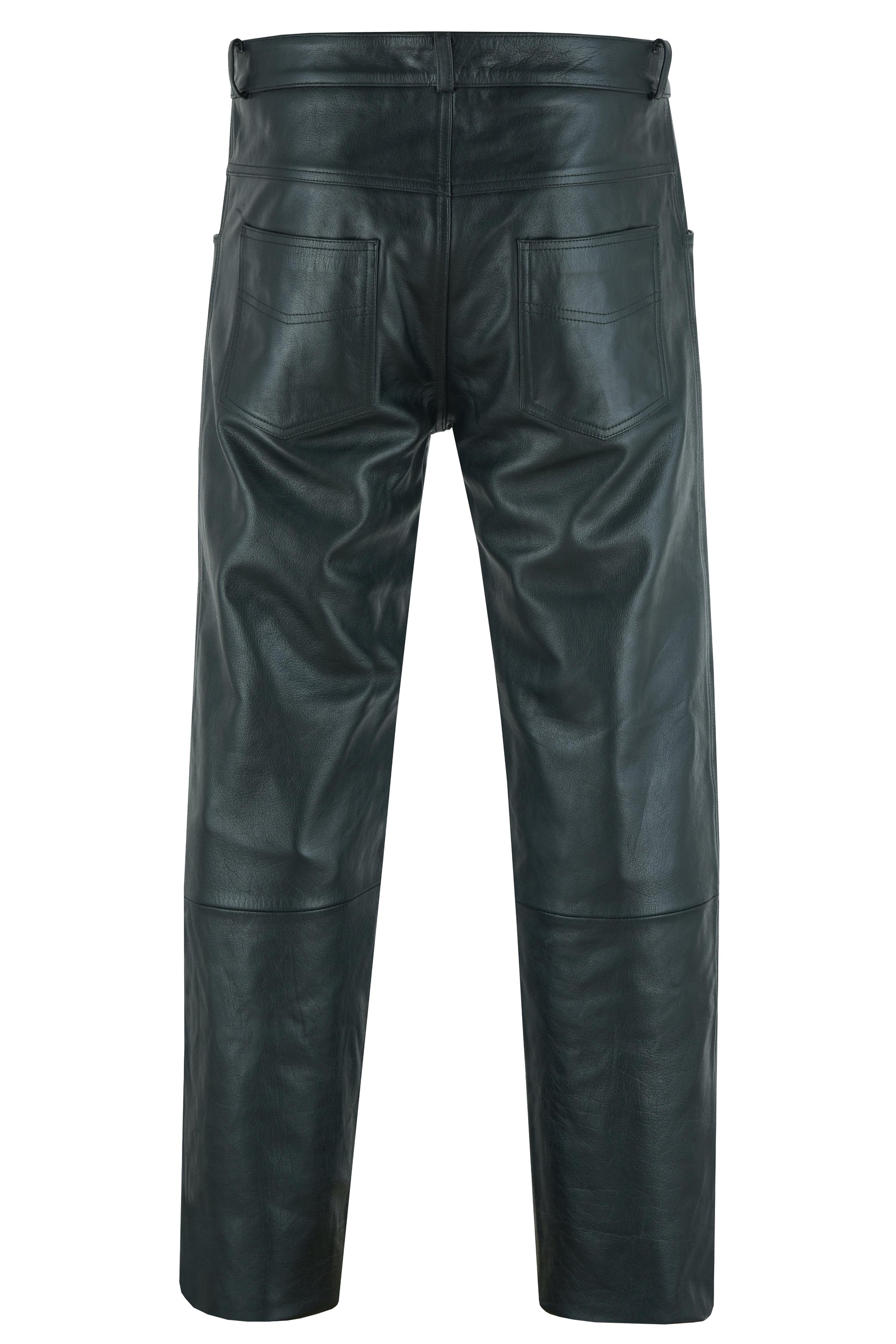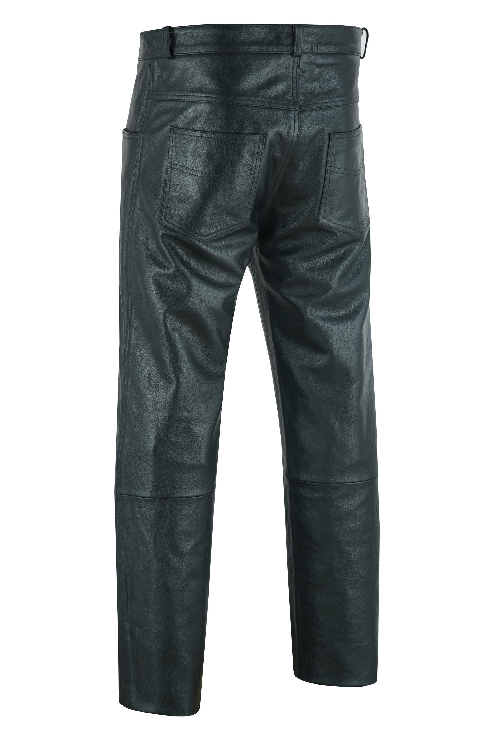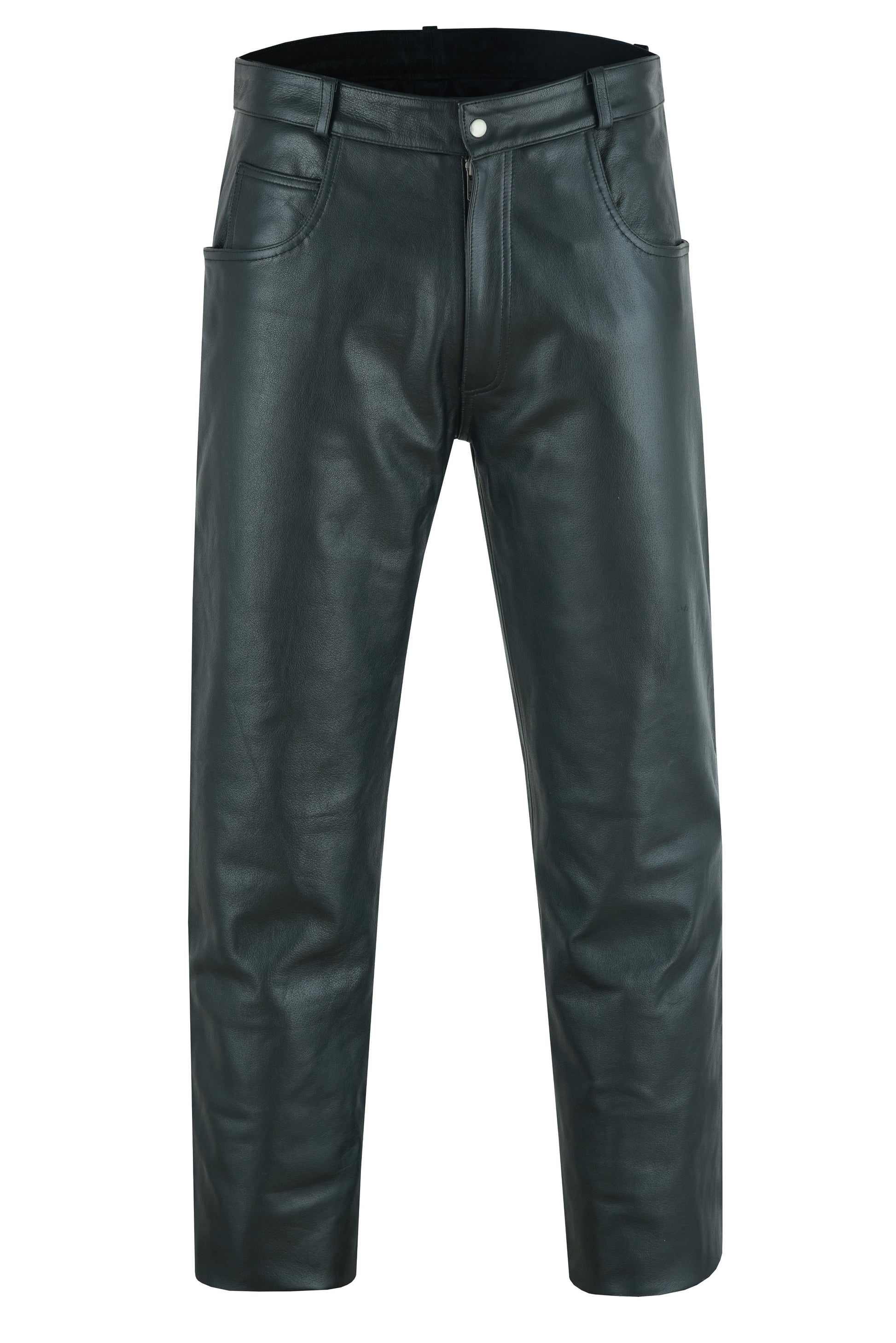 DS Men's Black Classic 5 Pocket Casual Motorcycle Leather Pants