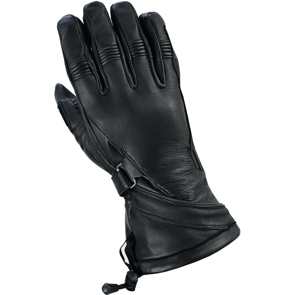 Men's waterproof gauntlet glove featuring high performance insulated liner for extra warmth with rain viper on thumb, reflective piping, touch screen finger tips and adjustable wrist strap. Made in premium Deerskin Leather.