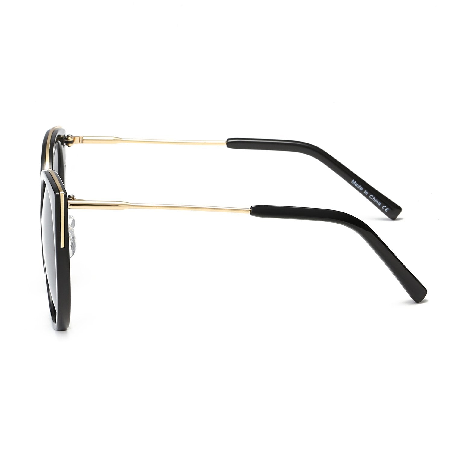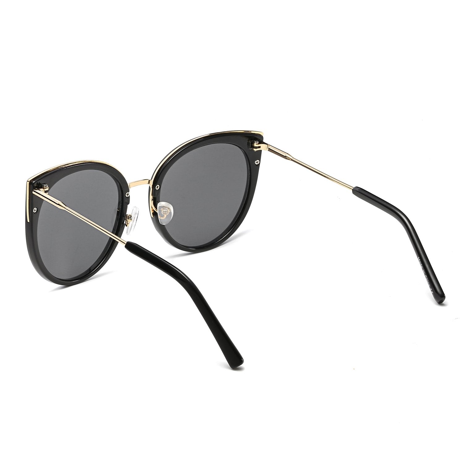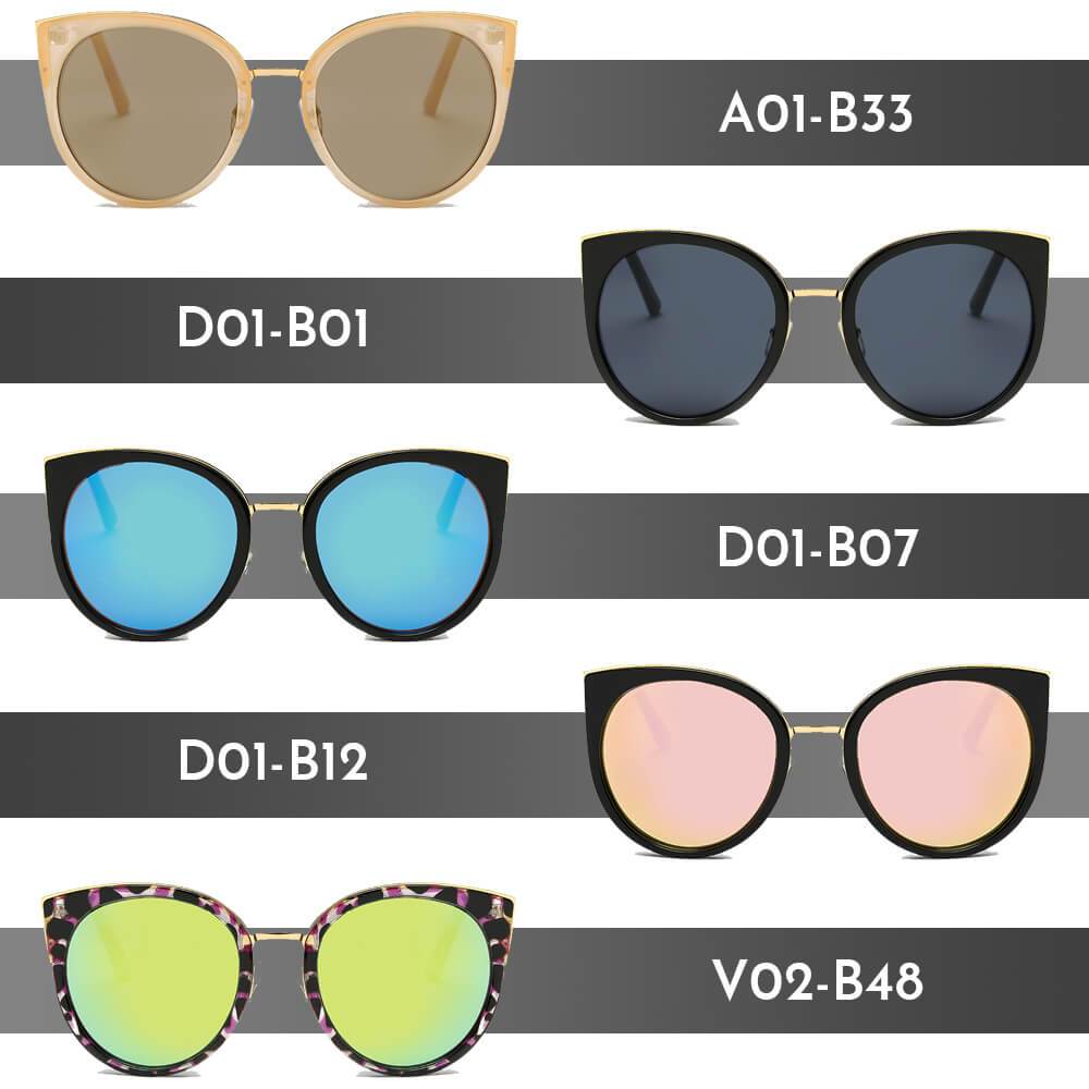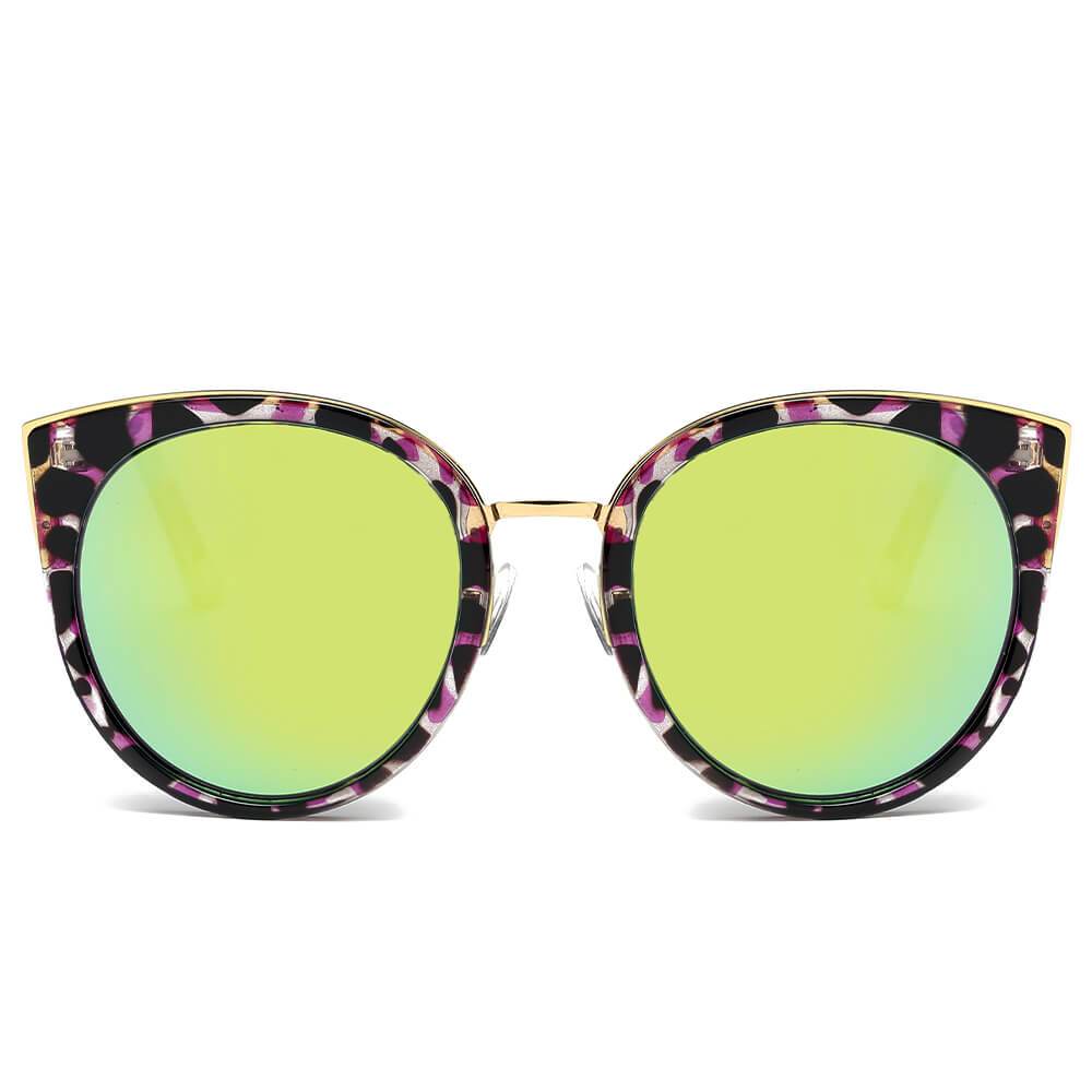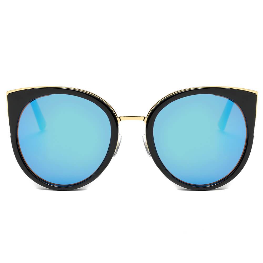 A tamer cat eye design that aims for cuteness, with just the slightest of pinched corners. Gold framed with bold rims. Good match with all outfits. Featuring a lightweight metal frame and richly colored mirrored lenses made of scratch-resistant polycarbonate that provide 100% UV protection.