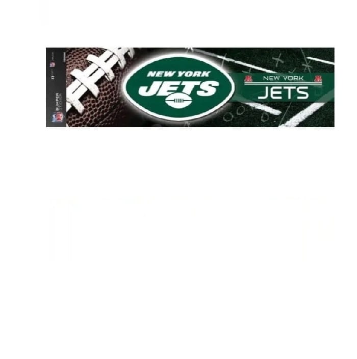 Eye-catching New York Jets Bumper Sticker measures 3 x 12-inches and is designed to fit everyone's style, no matter the team. Boasts an easy peel and stick application. Can be used on vehicles, lockers, bedroom doors and windows, laptops, notebooks and more. Suitable for indoor and outdoor use. See More NY Jets Merchandise