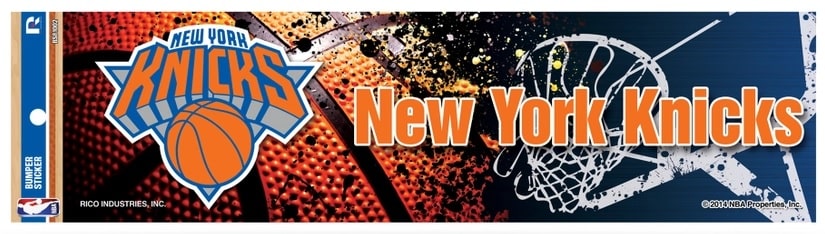 Eye-catching NY Knicks Bumper Sticker measures 3 x 12-inches and is designed to fit everyone's style, no matter the team. Boasts an easy peel and stick application. Can be used on vehicles, lockers, bedroom doors and windows, laptops, notebooks and more. Suitable for indoor and outdoor use. See NBA Teams By Conference and Division