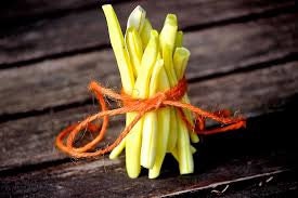 Fruit: Large, flat, thick, stringless, golden-yellow pods.