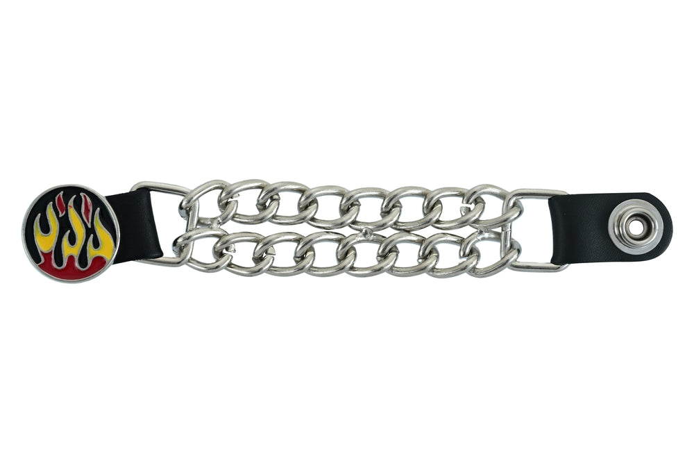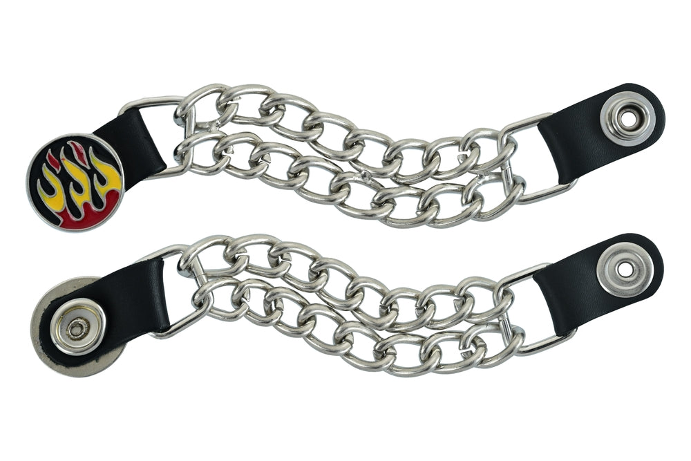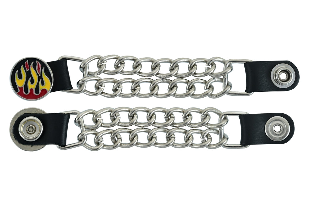The vest extender also features a chrome motorcycle chain design, giving it a rugged and stylish look.