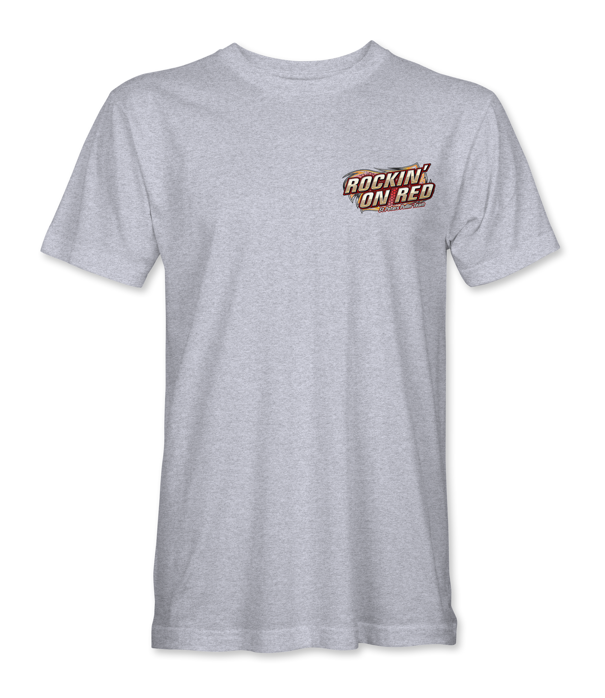 Support Rockin' On Red with their custom apparel! Available in Black, Sport Gray and White. Graphics are direct to garment printed with a left chest image and a full back image.