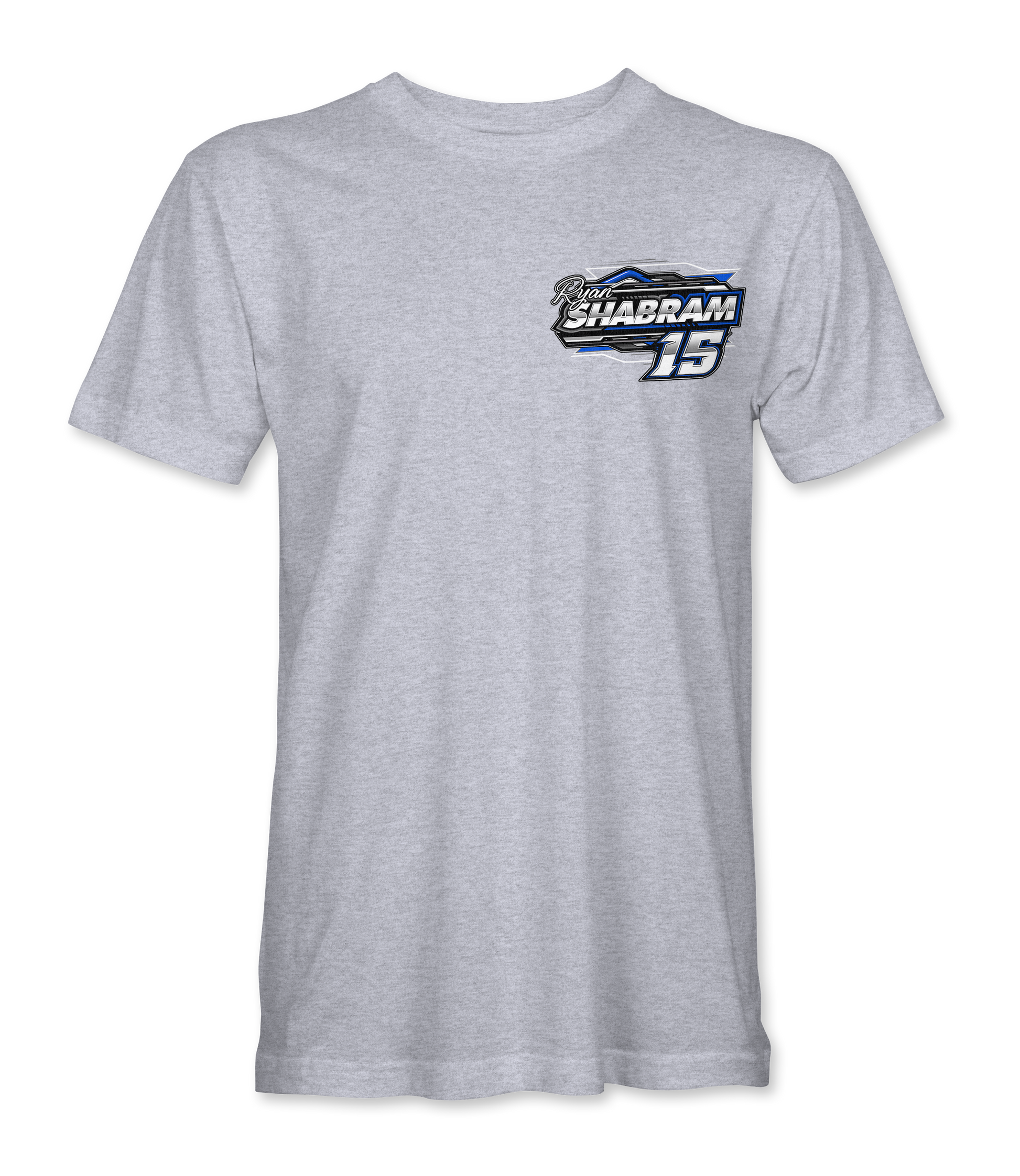 Support Ryan Shabram at Ronald Adams Racing with their custom apparel! Available in Black, Sports Gray and White. Graphics are direct to garment printed with a left chest image and a full back image.