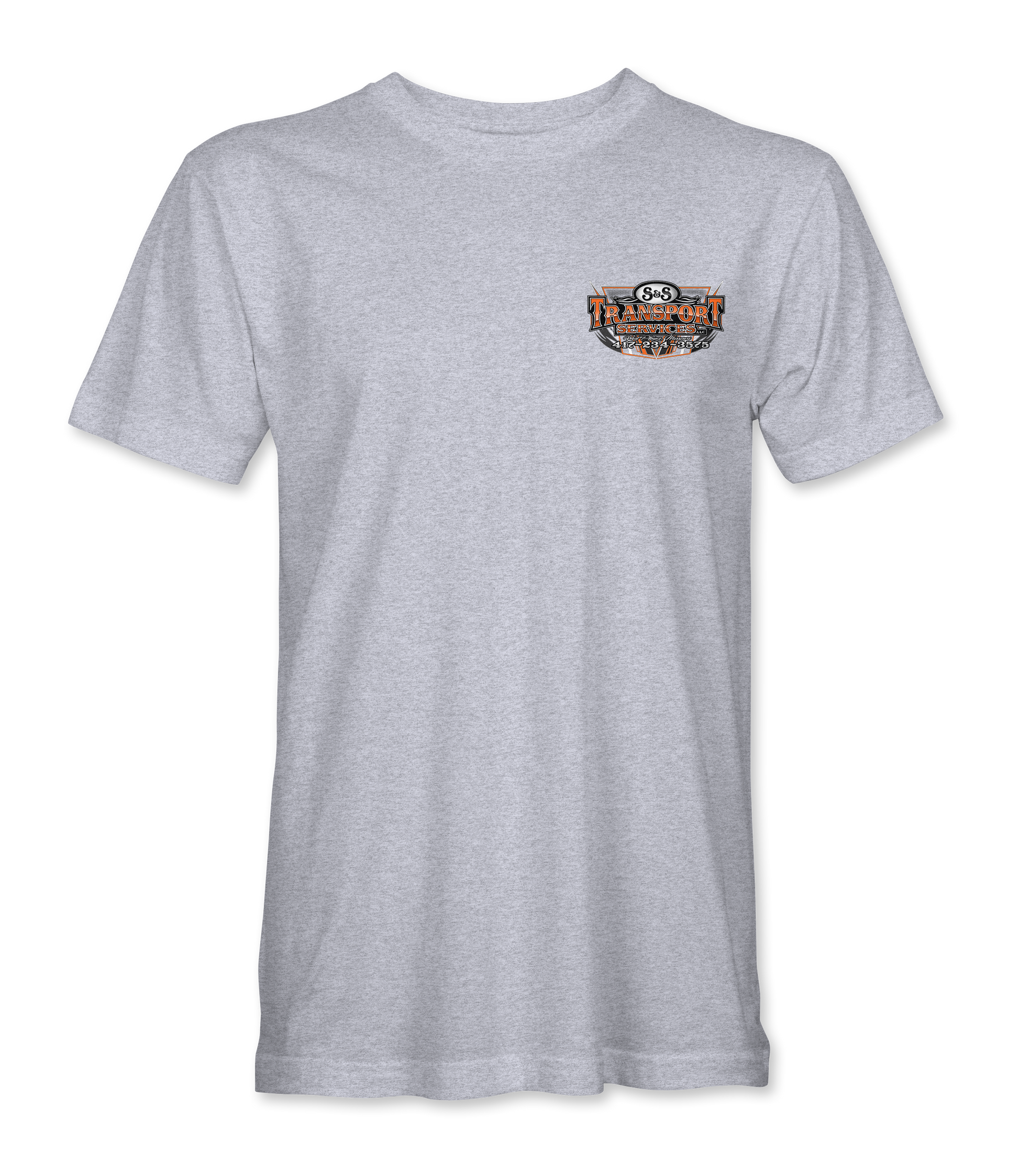 Support S&S Transport with their custom apparel! Available in Black, Sport Gray and White. Graphics are direct to garment printed with a left chest image and a full back image.