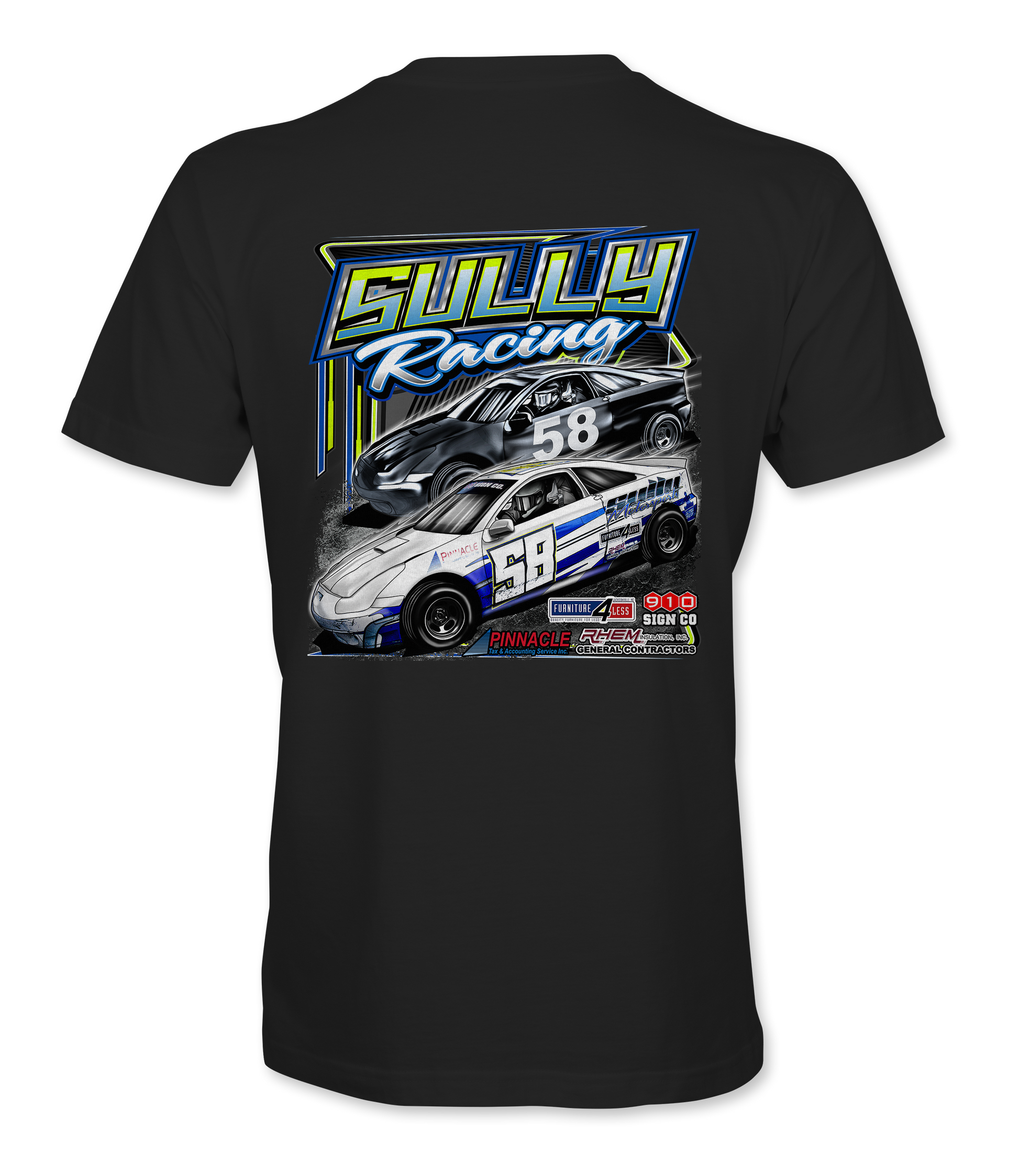Support Sully Racing with their custom apparel! Available in Black, Sports Gray and White. Graphics are direct to garment printed with a left chest image and a full back image.