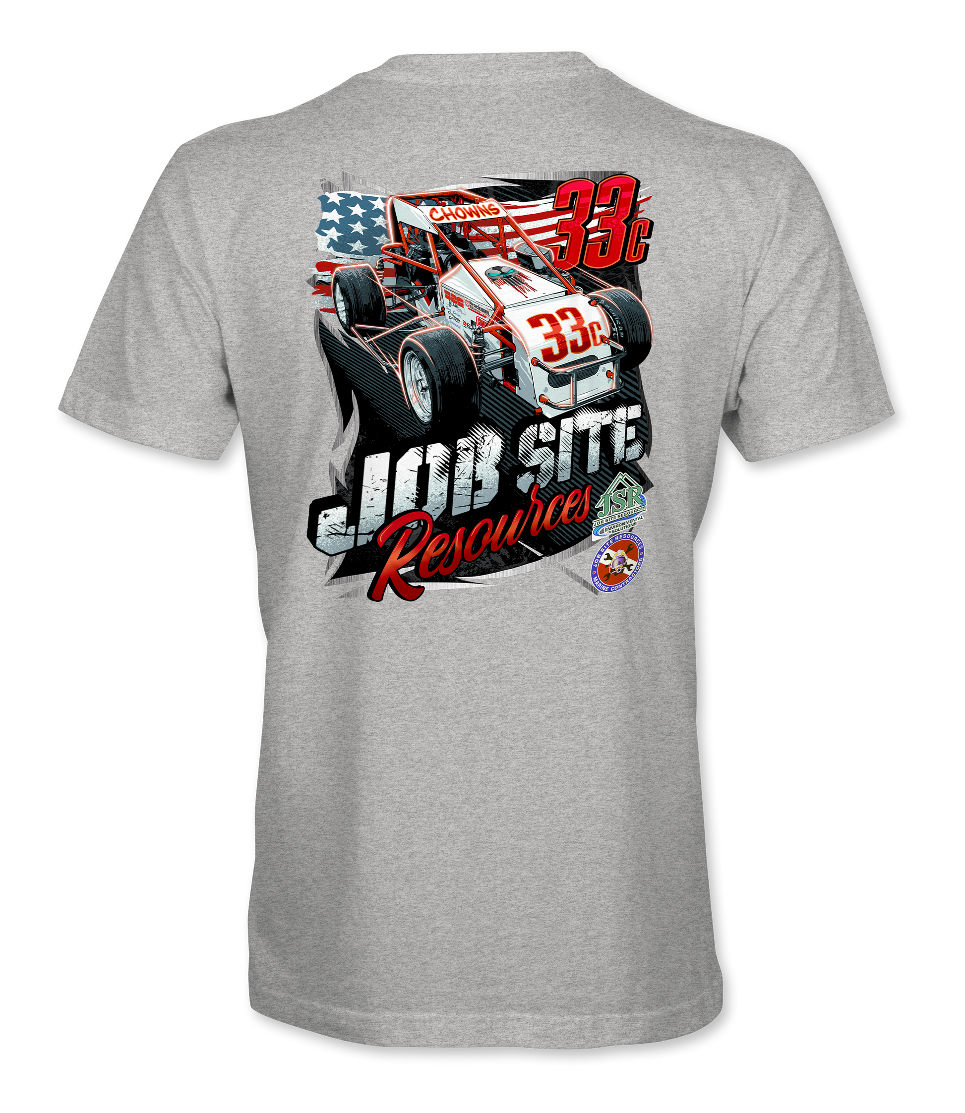 Support Tanner Chowns and his team with their custom apparel! Available in Black, Sport Gray and White. Graphics are direct to garment printed with a left chest image and a full back image.