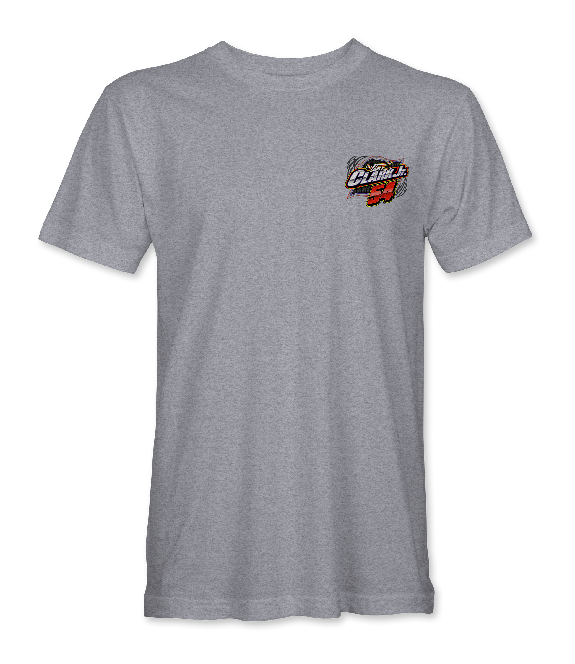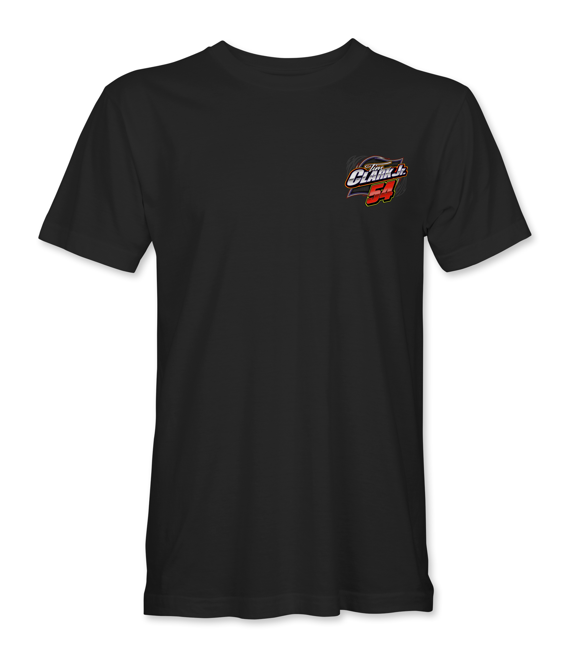 Support Tim Clark Jr. and his team with their custom apparel! Available in Black. Graphics are direct to garment printed with a left chest image and a full back image.