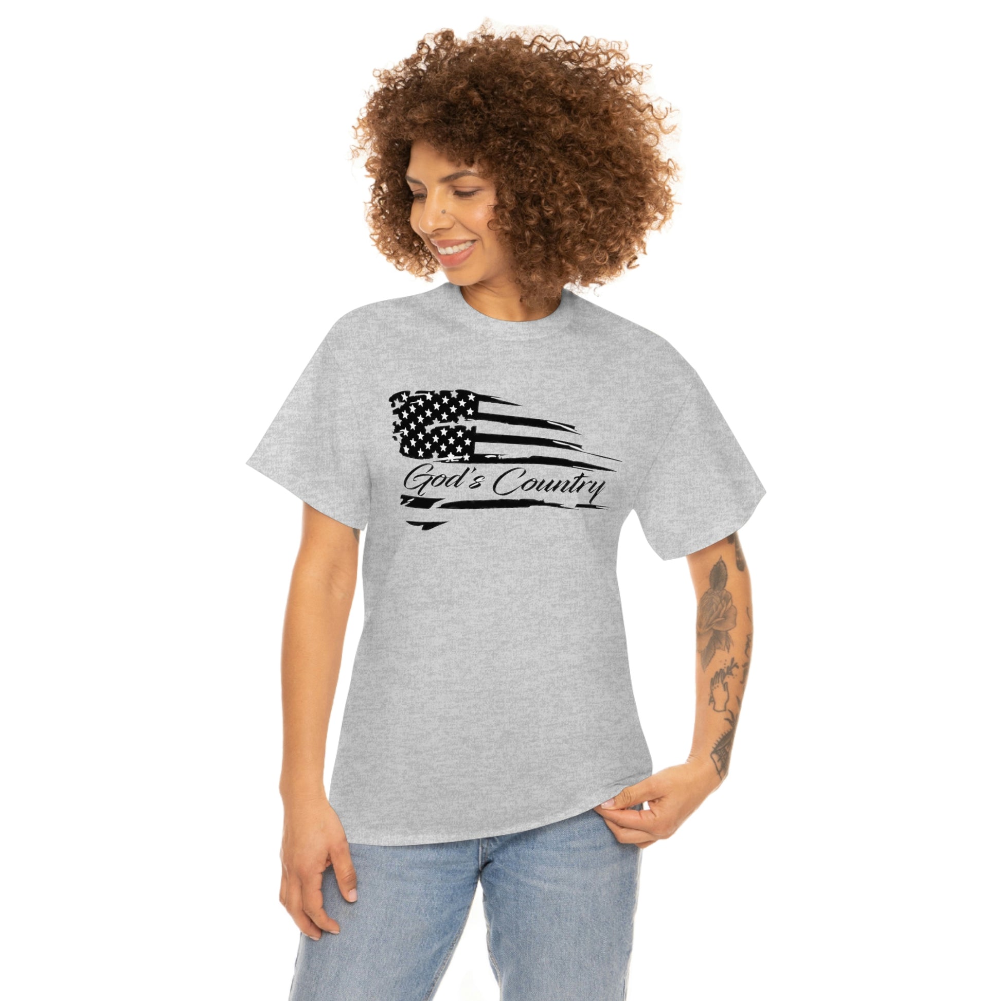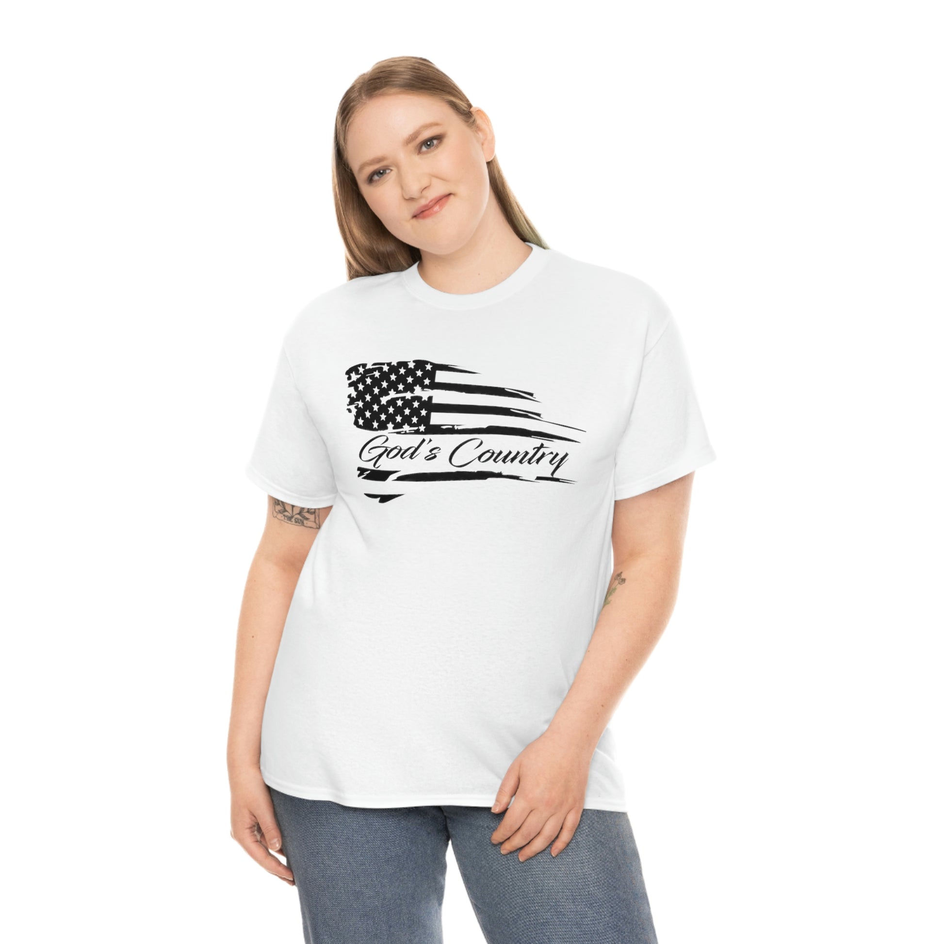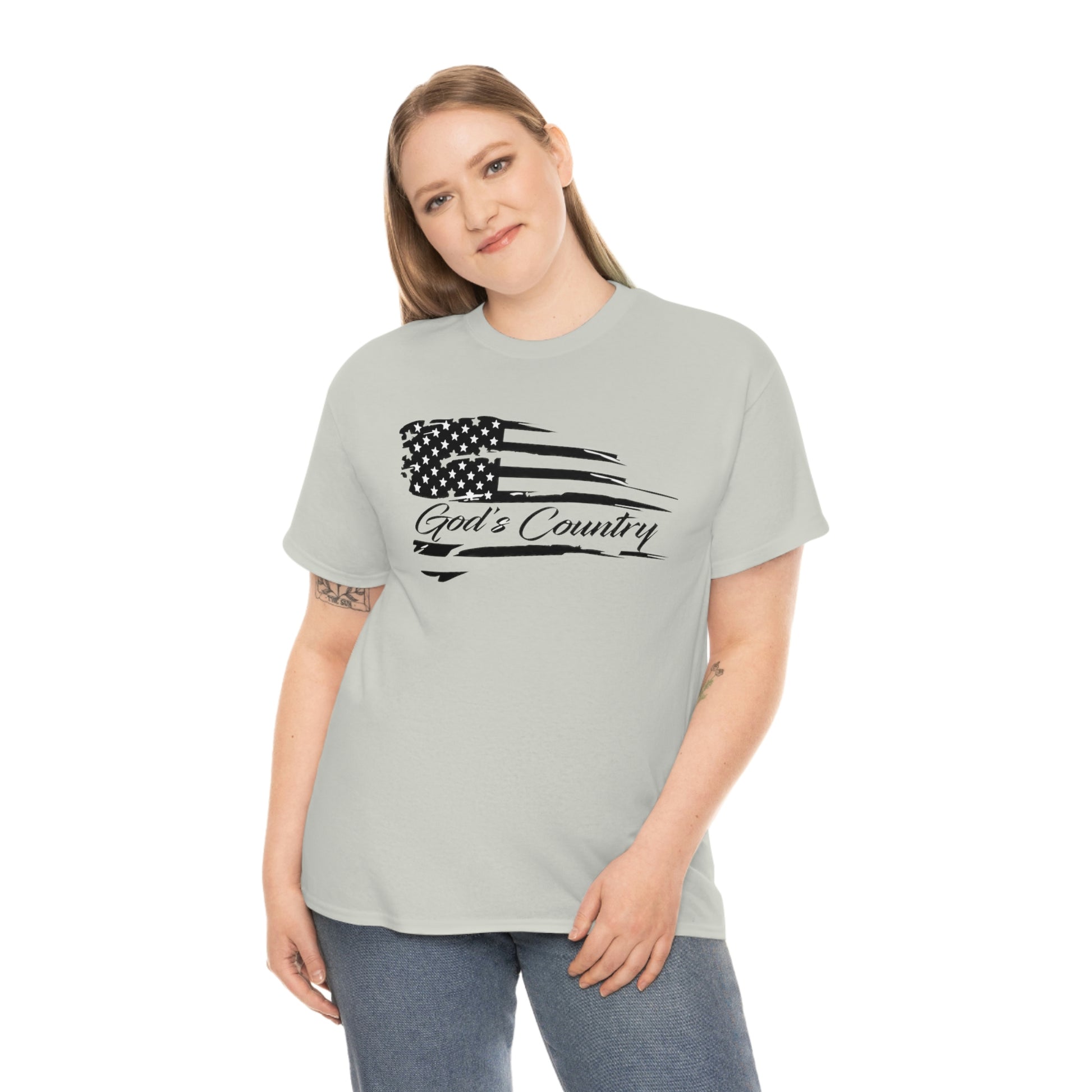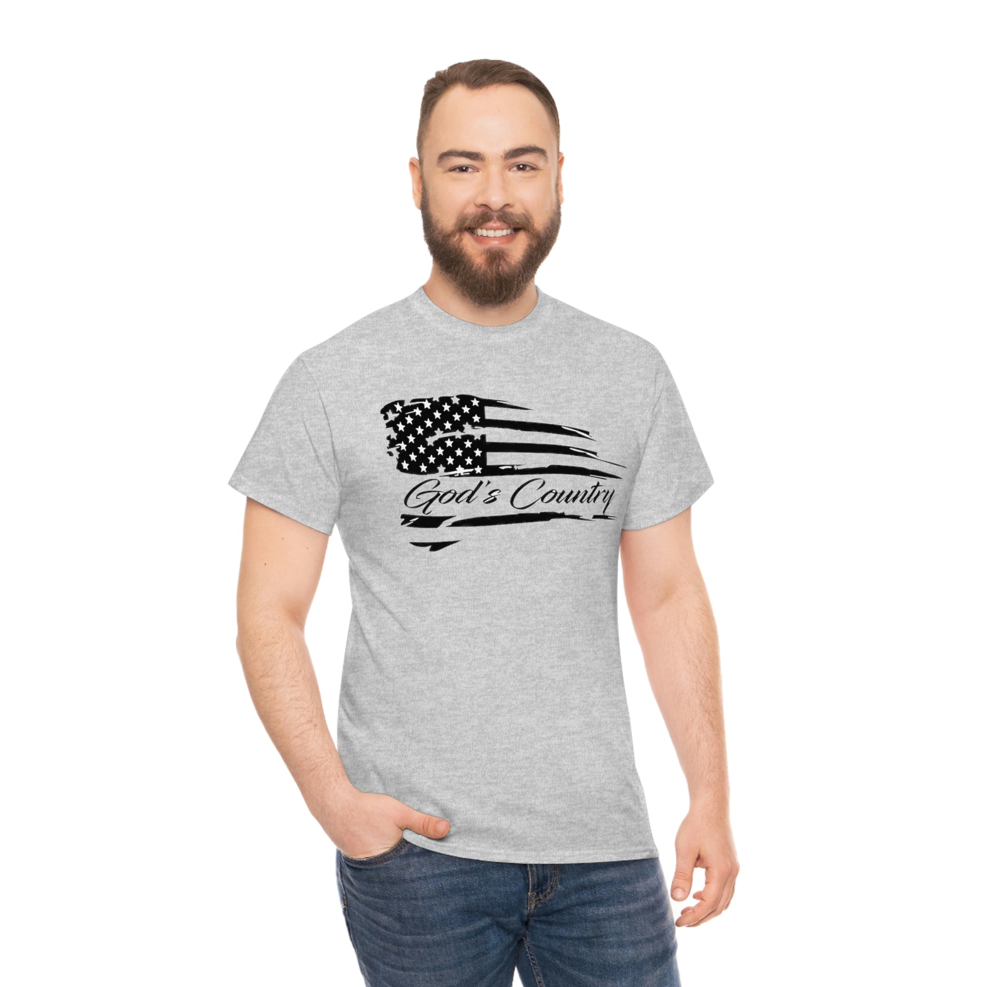 The unisex 'God's Country' heavy cotton tee is the basic staple of any wardrobe. It is the foundation upon which casual fashion grows. The specially spun fibers provide a smooth surface for premium printing vividity and sharpness. No side seams mean there are no itchy interruptions under the arms. The shoulders have tape for improved durability.