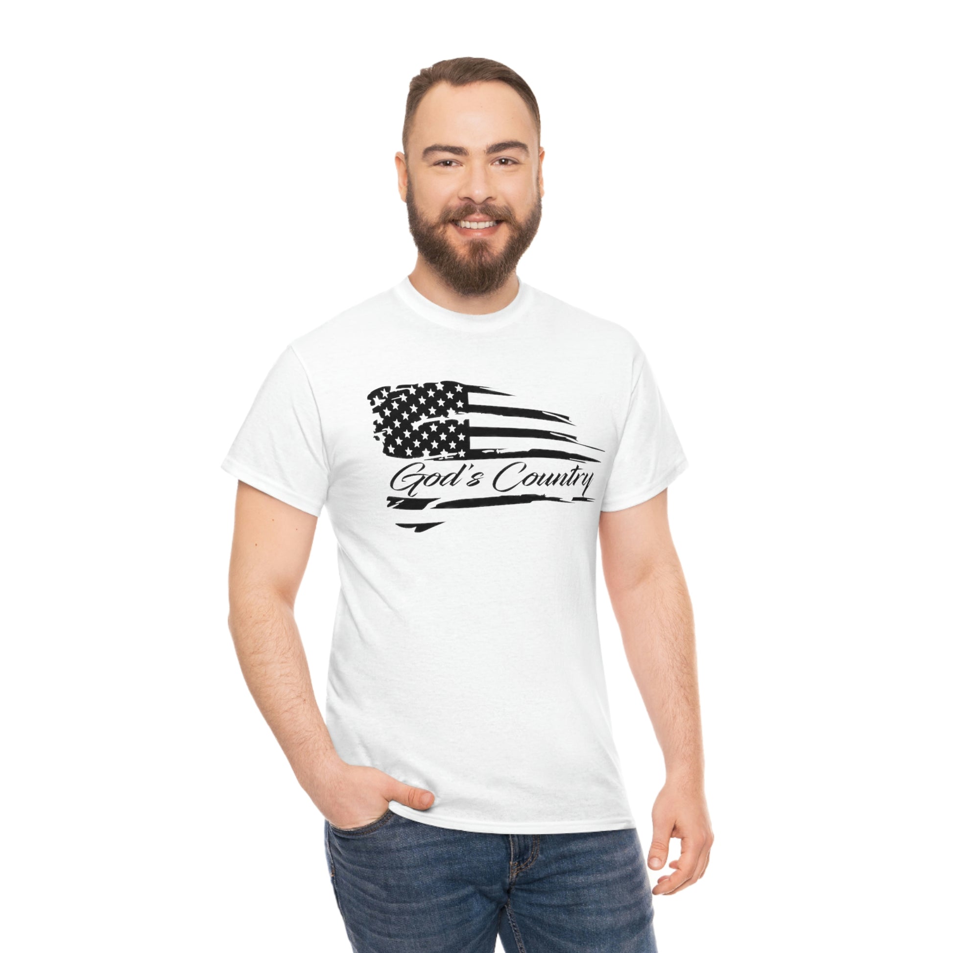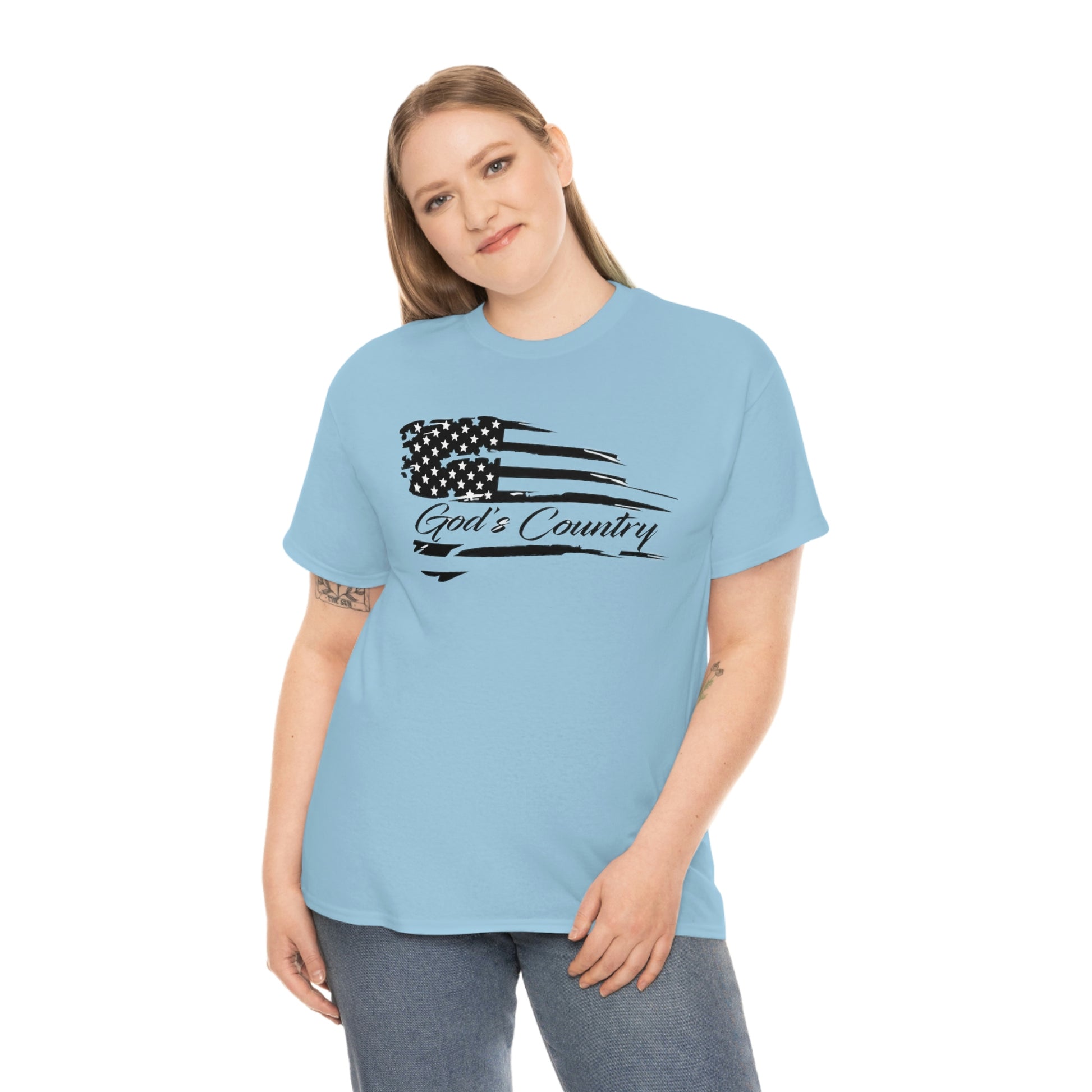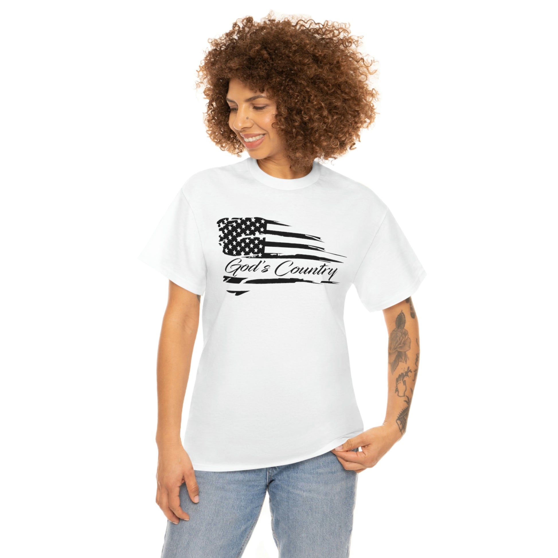The unisex 'God's Country' heavy cotton tee is the basic staple of any wardrobe. It is the foundation upon which casual fashion grows. The specially spun fibers provide a smooth surface for premium printing vividity and sharpness. No side seams mean there are no itchy interruptions under the arms. The shoulders have tape for improved durability.