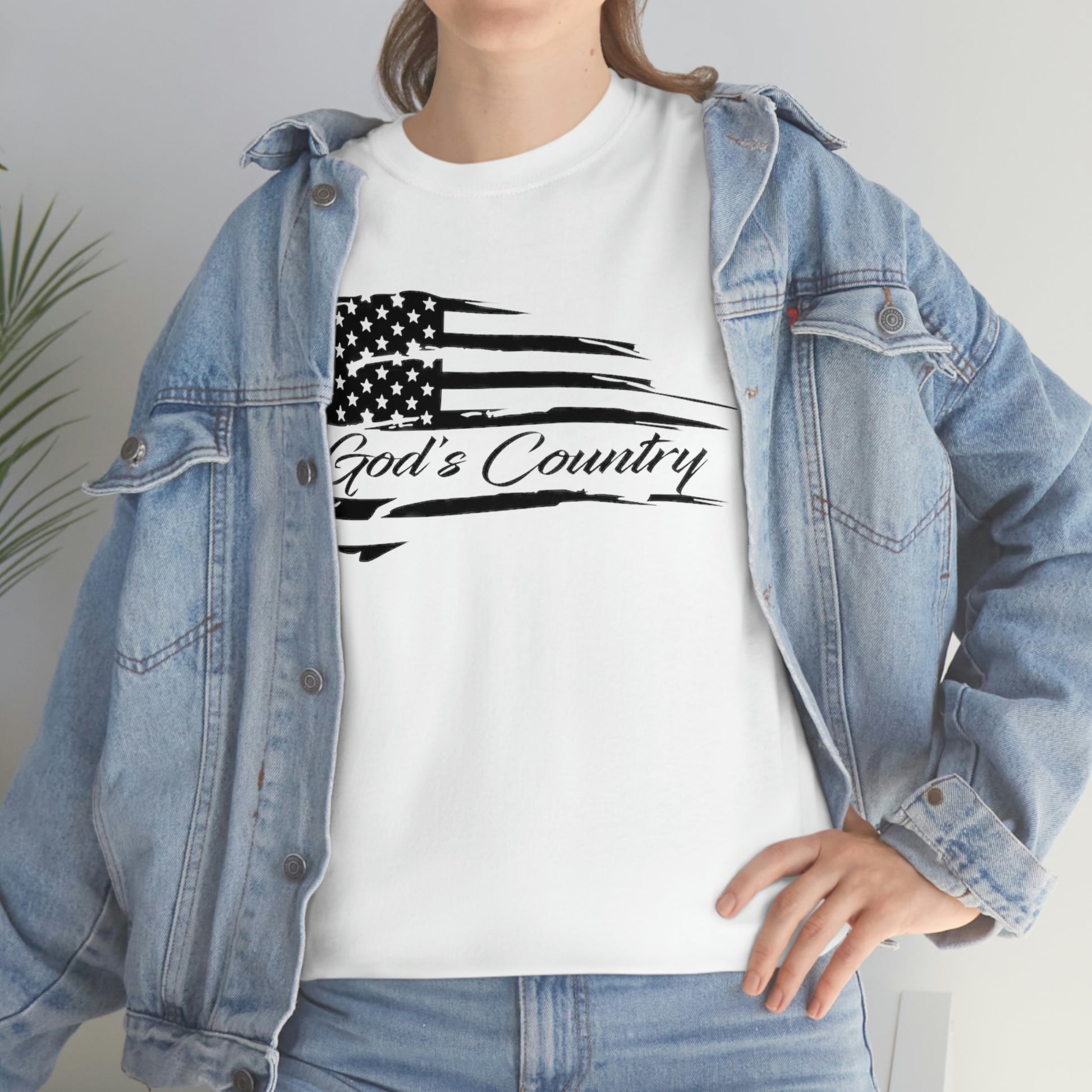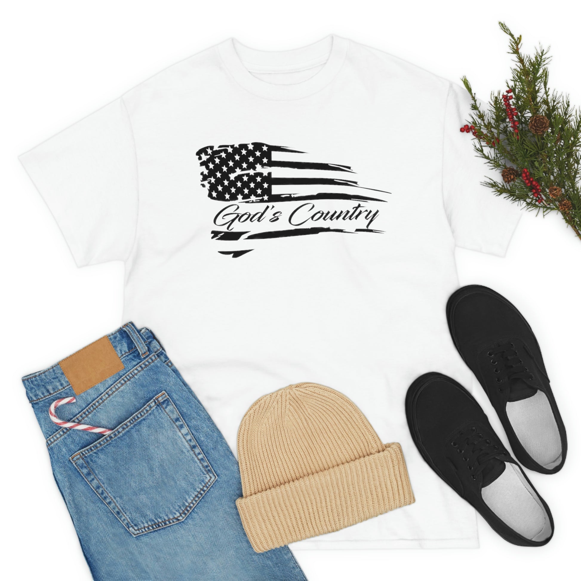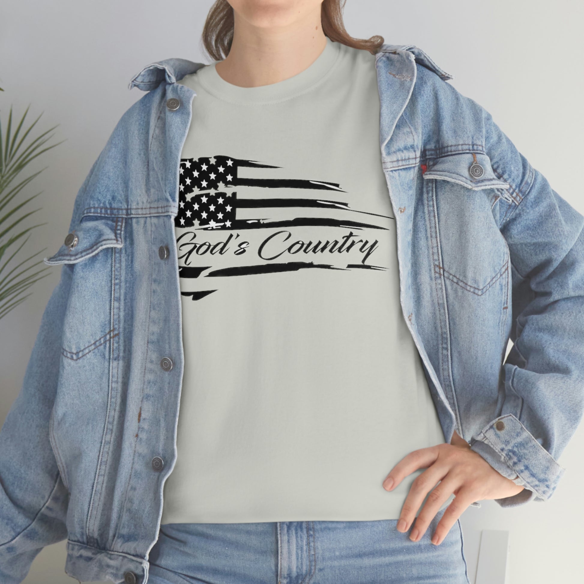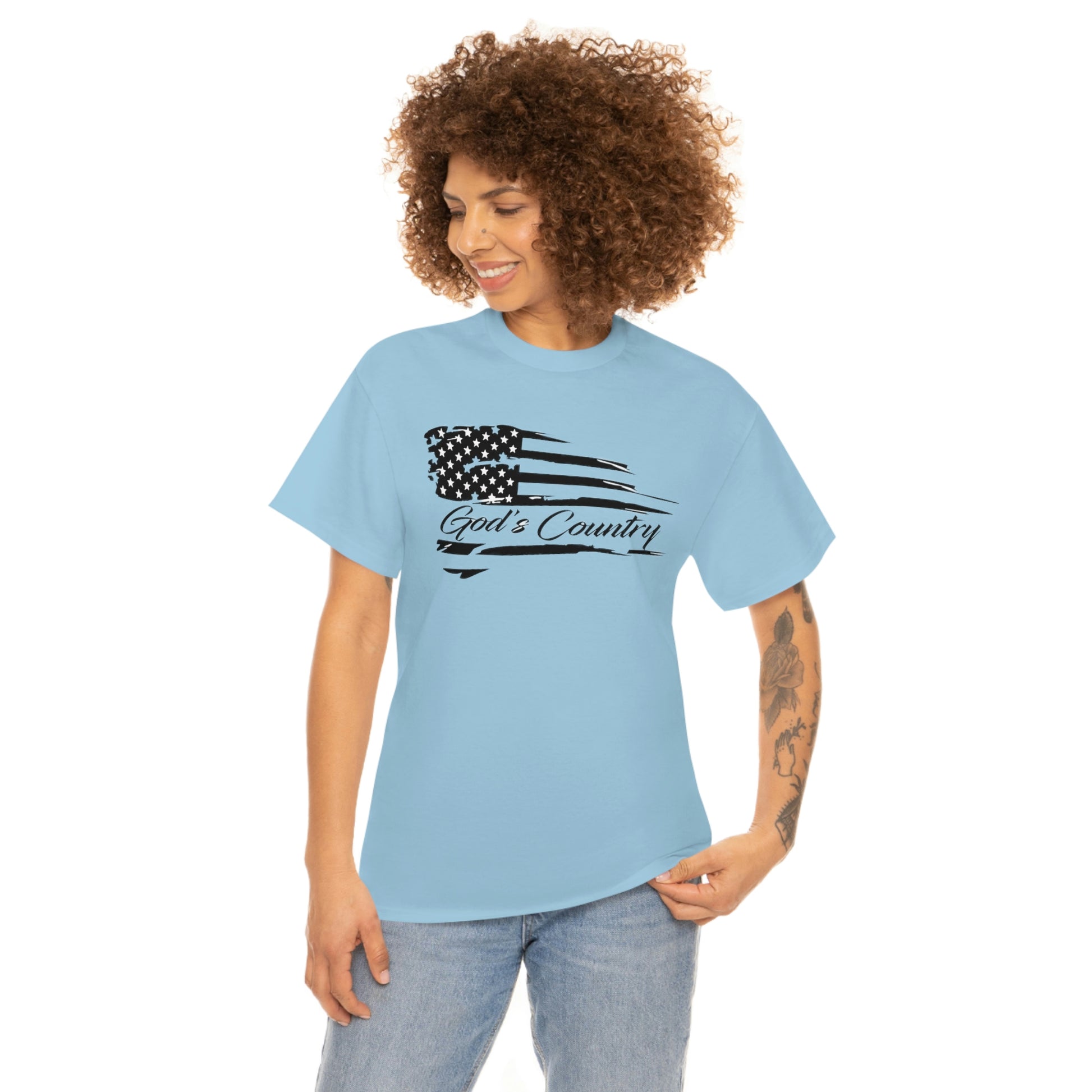 The unisex 'God's Country' heavy cotton tee is the basic staple of any wardrobe. It is the foundation upon which casual fashion grows. The specially spun fibers provide a smooth surface for premium printing vividity and sharpness. No side seams mean there are no itchy interruptions under the arms. The shoulders have tape for improved durability.