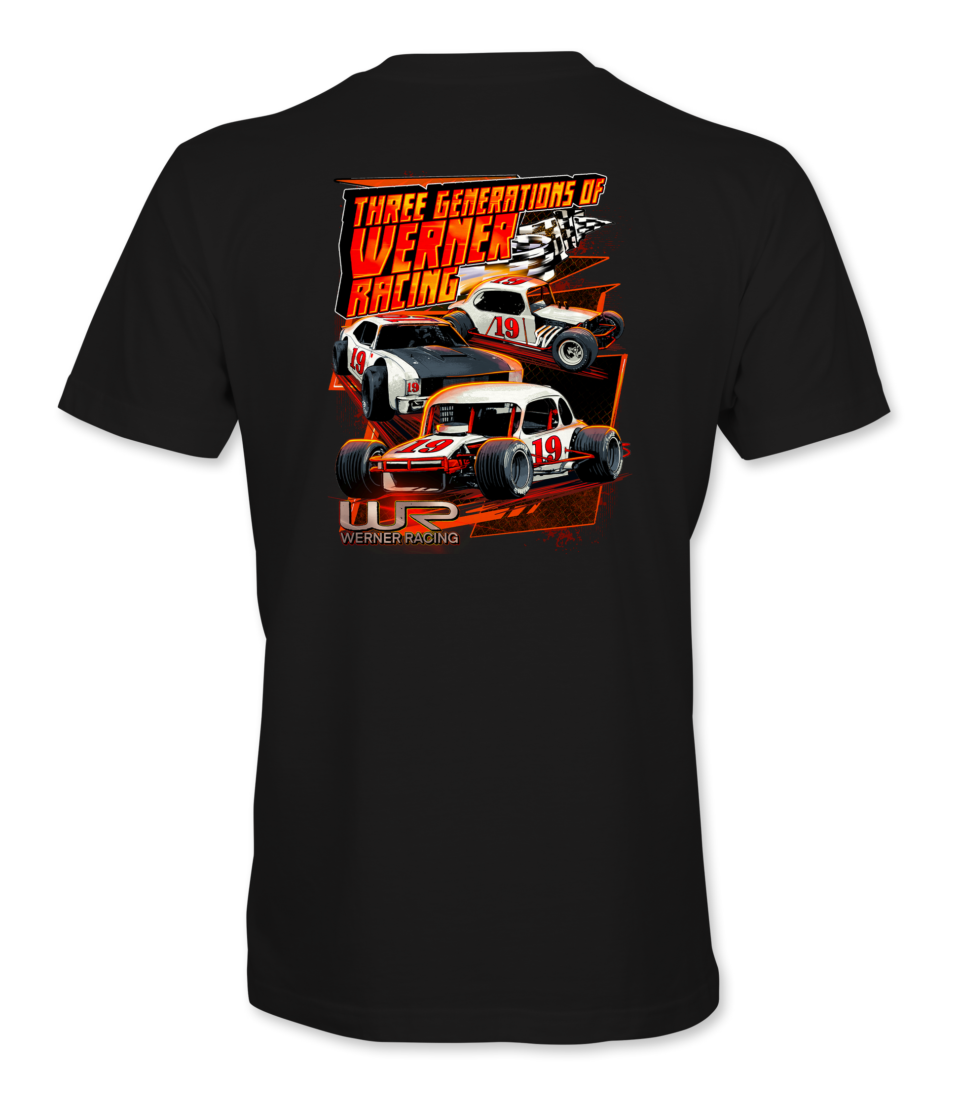 Support Werner Racing and their team with their custom apparel! Available in Black and Dark Heather. Graphics are direct to garment printed with a left chest image and a full back image.