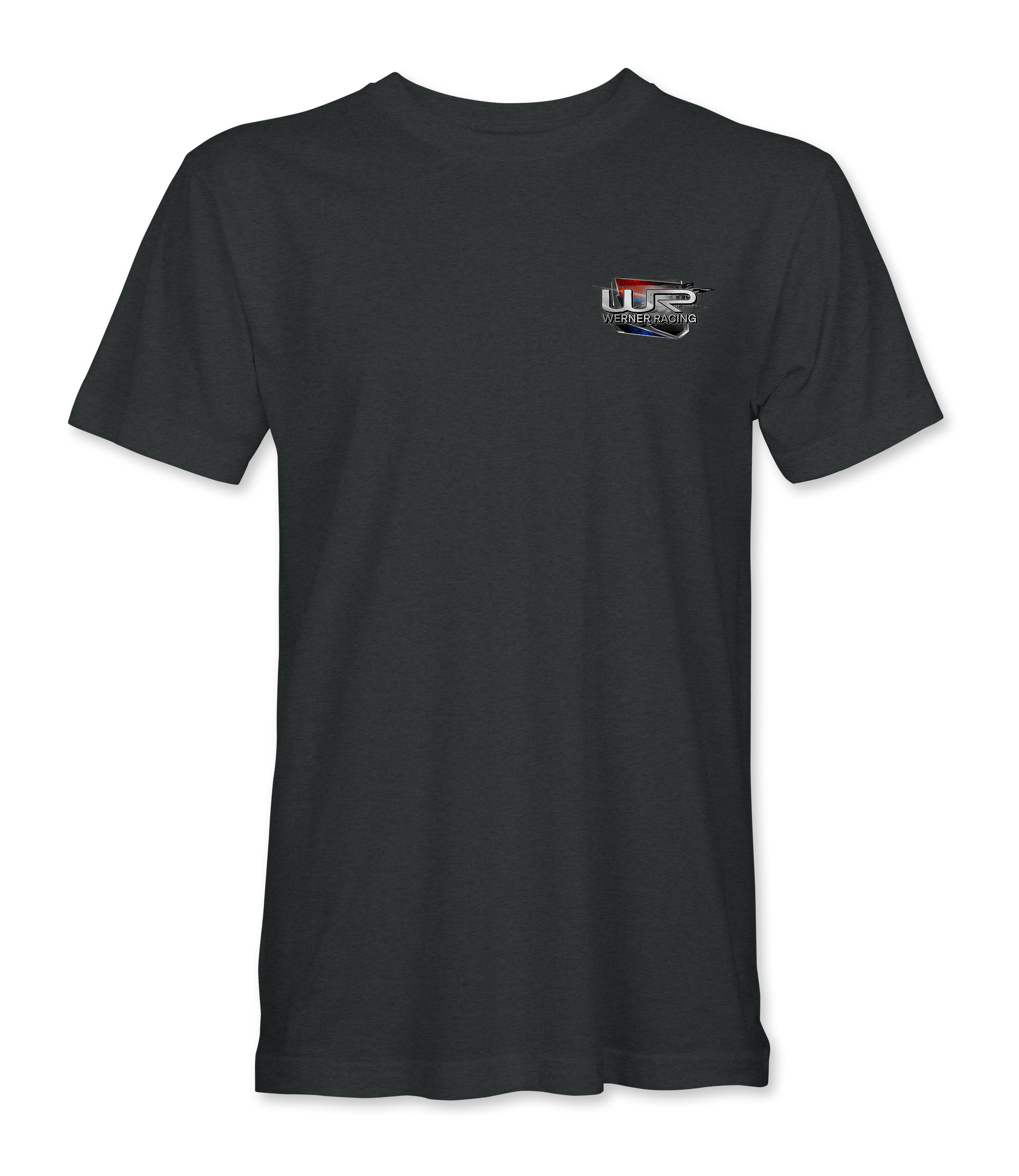 Support Werner Racing and their team with their custom apparel! Available in Black and Dark Heather. Graphics are direct to garment printed with a left chest image and a full back image.