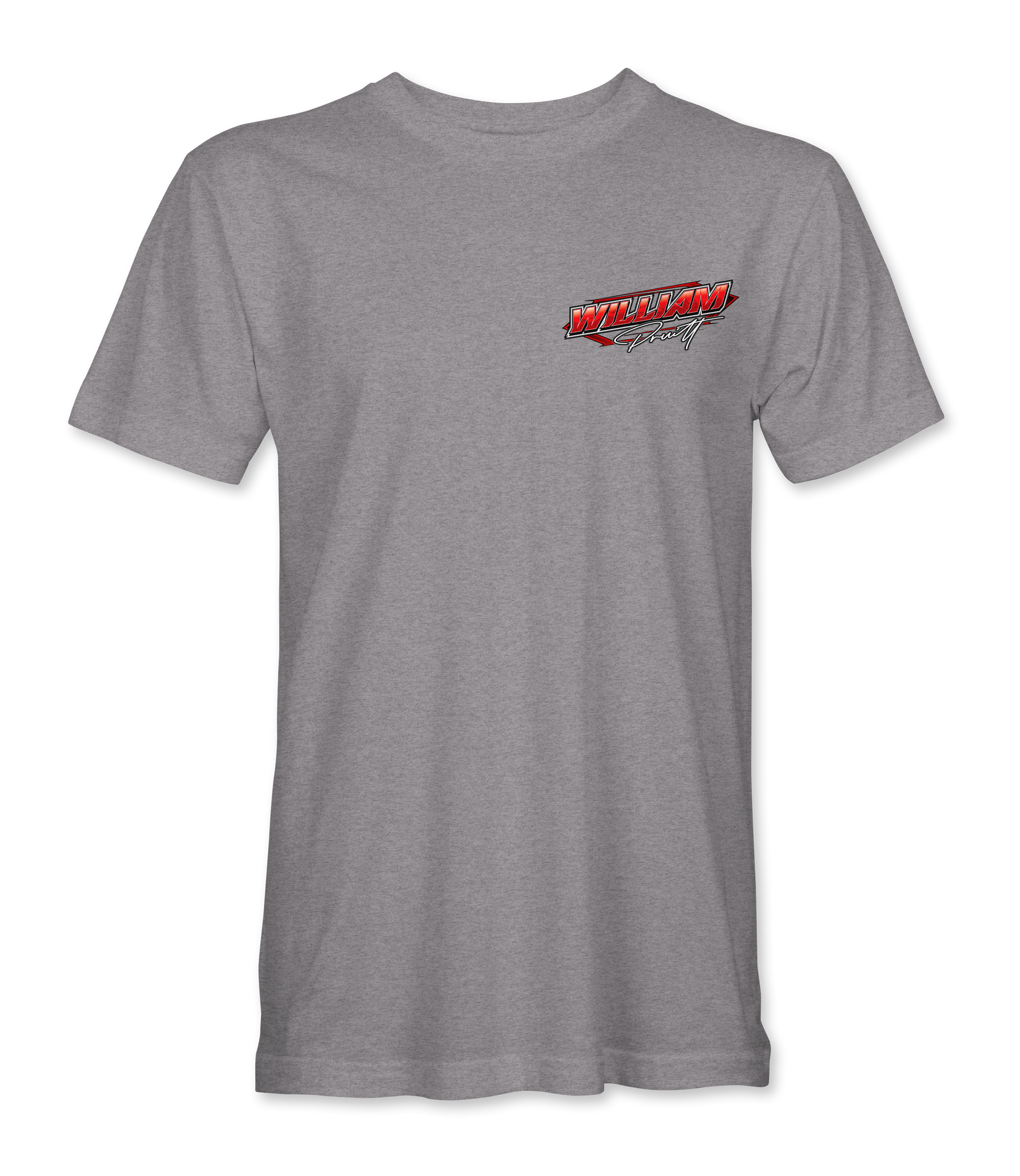 Support William Pruitt and his team with their custom apparel! Available in Black, Sport Gray and Graphite. Graphics are direct to garment printed with a left chest image and a full back image.