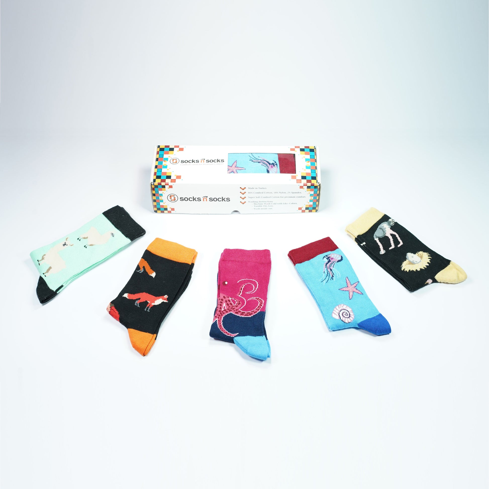 These socks sets, created with the perfect harmony of wild animal motifs with socks, will make you very happy and complement your combinations. Thanks to the sweet and interesting motifs of wild animals, you will increase your elegance and add a plus to your style. Add it to your cart now and complete the checkout process and finalize the purchases. Women's socks sets with wild animal motifs are looking forward to meeting you!